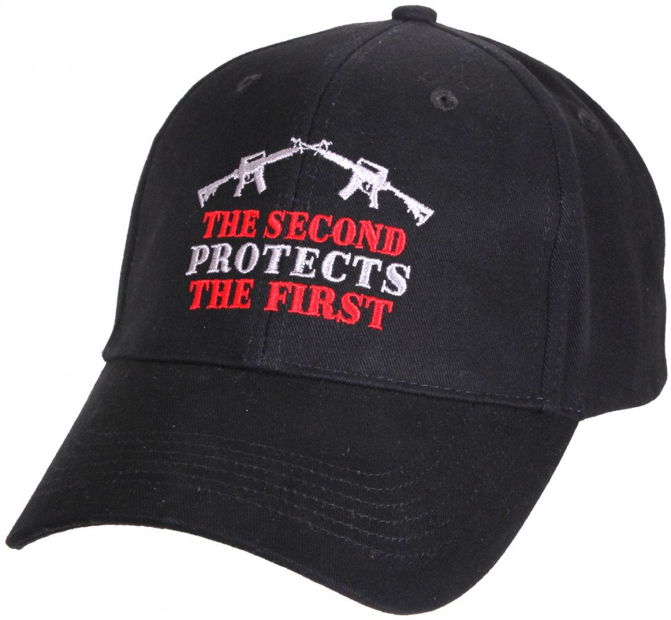 Бейсболка черная с карабинами M-4 и надписью «Второй защищает первого» Rothco 2nd Protects 1st Deluxe Low Profile Cap 9820
