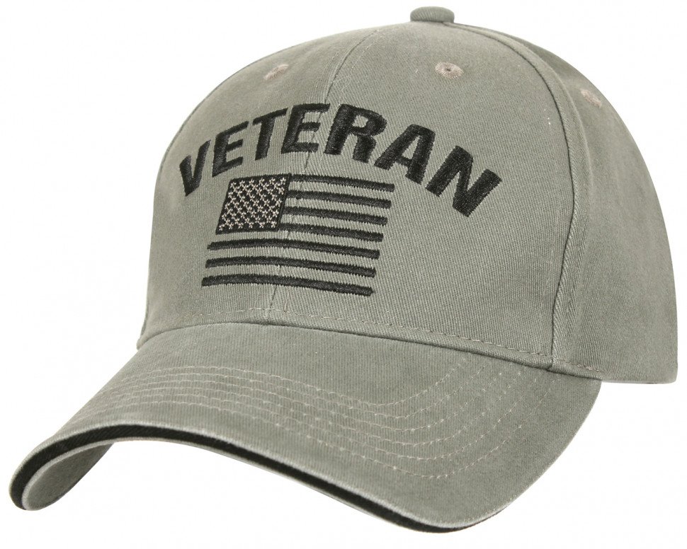 Бейсболка винтажная оливковая с флагом США и надписью "ВЕТЕРАН" Rothco Vintage Veteran Low Pro Cap 3599