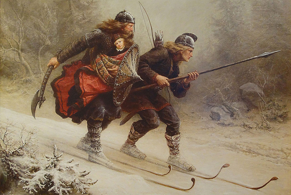 Картина сверху изображает самых древних охотников, которые могли носить рюкзаки (хотя, к сожалению, не на этой картине). Путешествуя по суровой местности, скандинавцам часто было необходимо носить свои пожитки на спинах. Этот образ был настолько знаковым, что будущий производитель ранца Берганс купил права на эту картину, чтобы использовать ее как логотип.